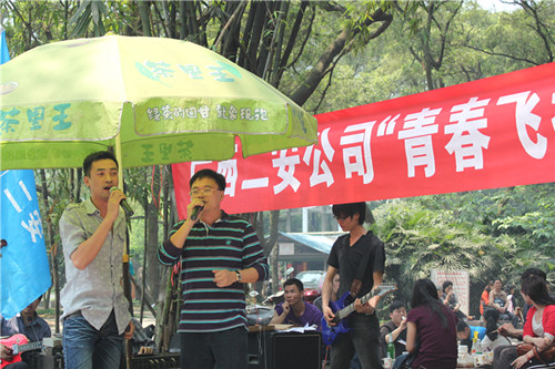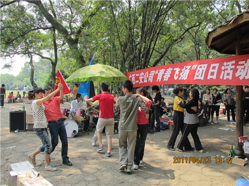 2011年4月23日,集團(tuán)二安公司團(tuán)委組織全公司各基層團(tuán)支部在柳州市雀山公園舉行了主題為“青春飛揚(yáng)” 露天音樂會(huì)團(tuán)日活動(dòng),迎接第92個(gè)“五四青年節(jié)”的到來。公司董事長、總經(jīng)理、黨委副書記黃鼎龍;公司黨委書記、紀(jì)委書記、工會(huì)主席藍(lán)錦?。还靖笨偨?jīng)理覃幼轍;公司副總經(jīng)理、第三分公司經(jīng)理莫雄清參加了此次活動(dòng)。并為榮獲集團(tuán)公司一屆二次職代會(huì)文藝晚會(huì)一等獎(jiǎng)的演員及榮獲公司2010年度“十佳青年崗位能手”頒發(fā)榮譽(yù)證書及獎(jiǎng)金?;顒?dòng)集表彰、素質(zhì)拓展訓(xùn)練、氣排球比賽,文藝表演等于一體,形式新穎,精彩紛呈。團(tuán)員青年們積極參與,各自表演自己的特長,唱歌、跳舞等節(jié)目層出不窮,活動(dòng)現(xiàn)場(chǎng)氣氛熱烈,高潮迭起,展現(xiàn)出了二安青年員工朝氣蓬勃、積極向上的精神面貌,吸引了不少圍觀者的眼球。此次活動(dòng)的開展,增進(jìn)了團(tuán)員青年們的溝通交流,企業(yè)凝聚力進(jìn)一步增強(qiáng),更好地促進(jìn)廣大團(tuán)員青年員工立足崗位,扎實(shí)工作,不斷創(chuàng)新,充分發(fā)揮團(tuán)員青年生力軍作用,在公司建功立業(yè)過程中體現(xiàn)青年人的人生價(jià)值,為公司健康快速發(fā)展奉獻(xiàn)青春力量!